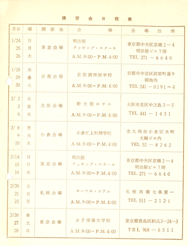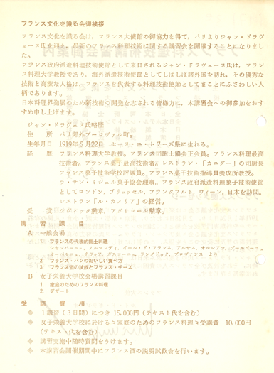 講習会は東京だけでなく、大阪・福岡・札幌等でも開催され、ドラヴェーヌ氏の滞在は1ヵ月~1ヶ月半ほど。期間中は毎週3日間ほど講習が開催されていました。