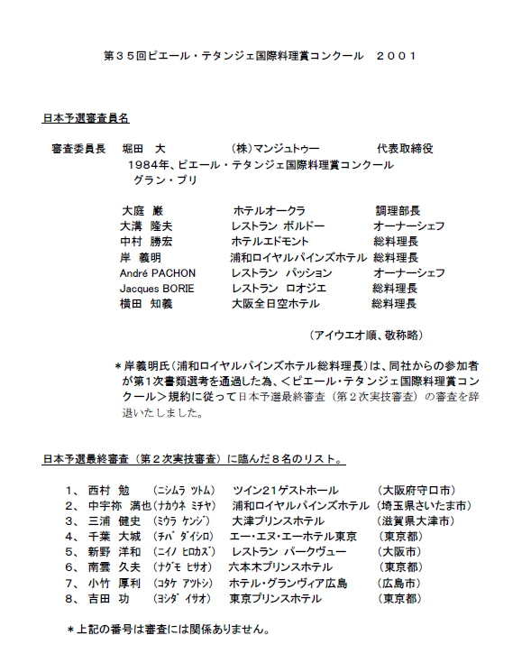 <2001年 第35回ピエール・テタンジェ国際料理賞コンクール>