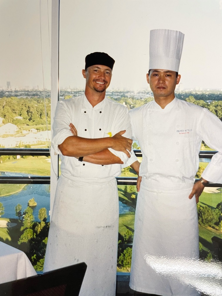 「1986年にここにいた13年間のうち、1年だけ大阪・京橋にあるTWIN21の最上階にあったVIPが使うゲストホールに勤務しました。当時は松下の課長さんや部長さん、松下幸之助さんが使っていたレストランでした。そして、このゲストホールの料理長が岸義明シェフだったのです。その後また守口プリンスホテルに戻って12年くらい勤めました。」