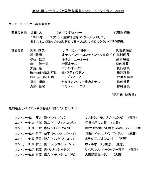<2008年 第42回≪ル・テタンジェ≫国際料理賞コンクール>