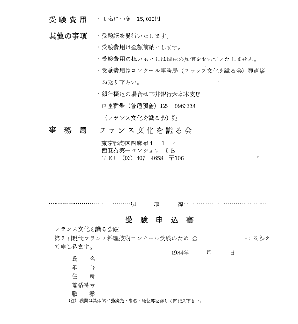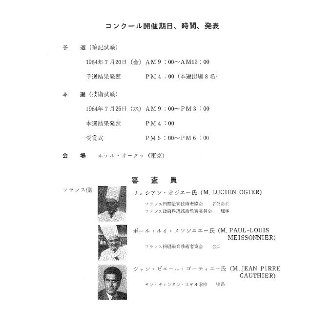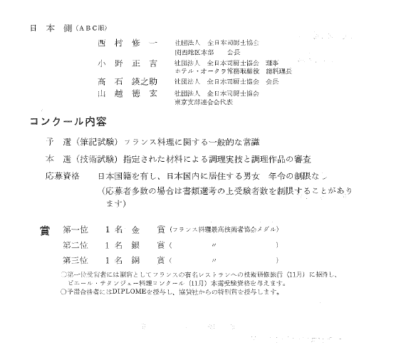 今回は堀田シェフへのインタビューに関連して、当時の要項をアップします。