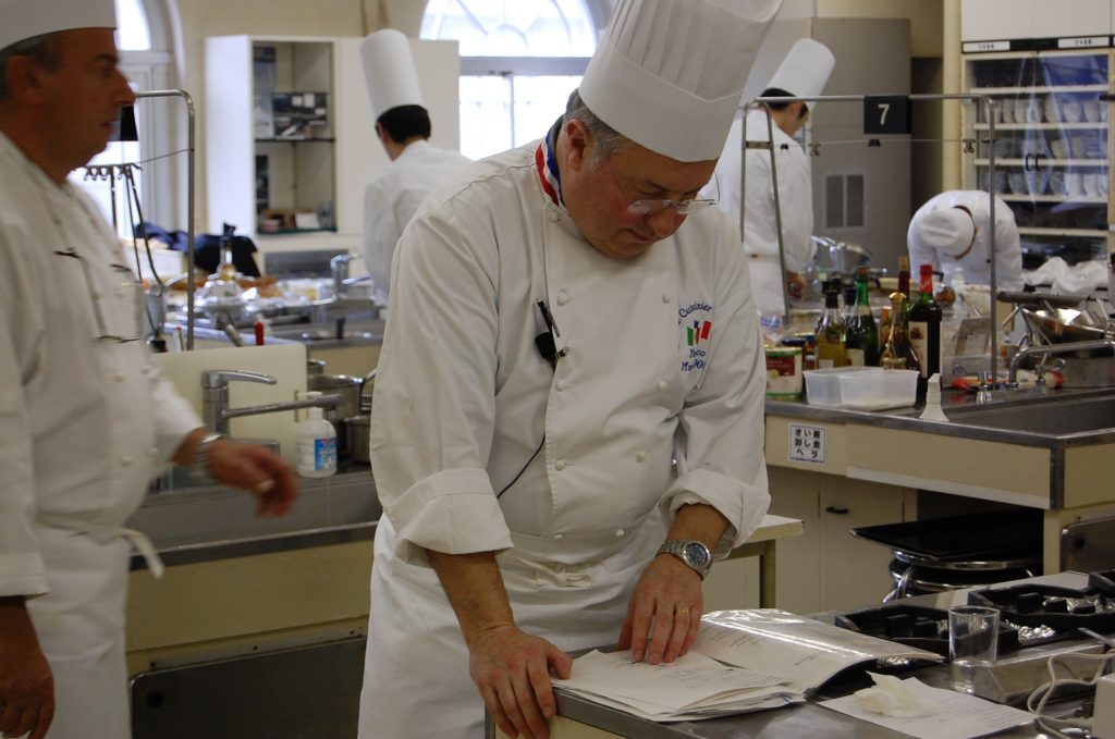 講習会の会場にて、ルセットを確認するビスカイシェフ