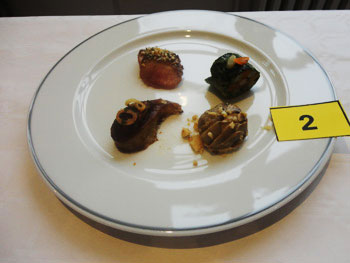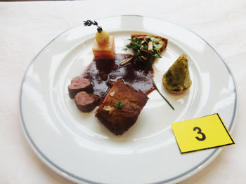 また、猪肉は肝炎、ジストマの危険があるので、à point, bien cuitに仕上げなければいけないが、出来上がりがほとんど生焼け状態の作品もあった。