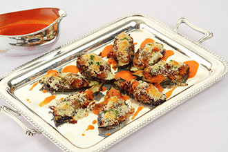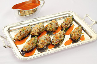 Un Poulet désossé et farci, servie entier ou reconstituée (pas de galantine) Cuisson libre