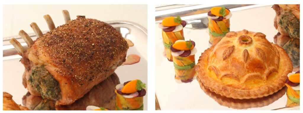 Carré de porc fermier rôti, farci et manchonné Servi entier pour 6 personnes