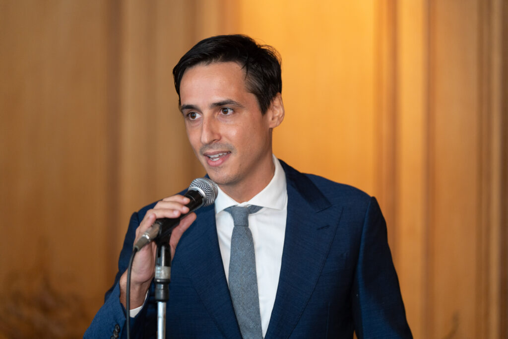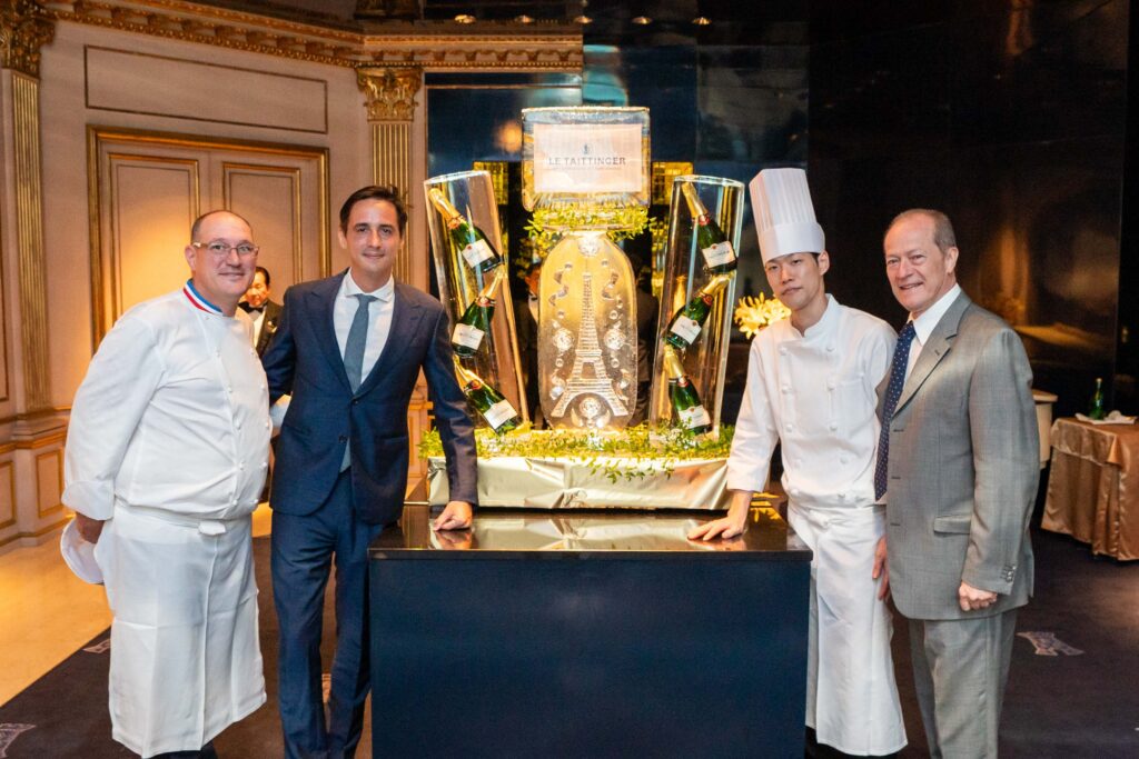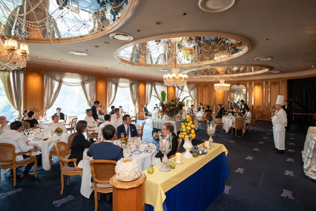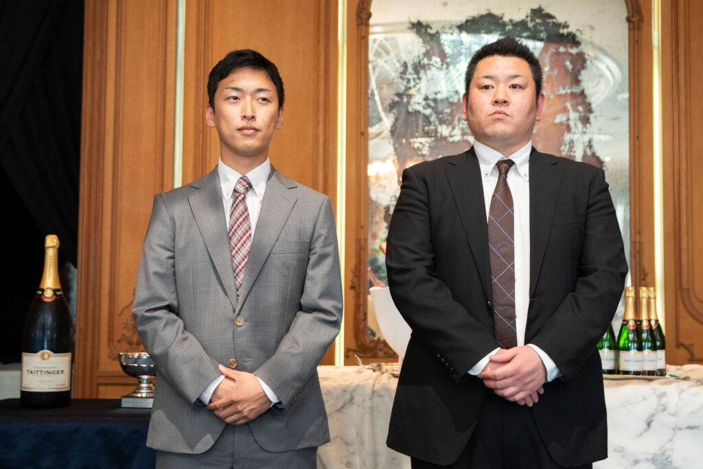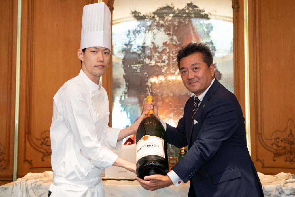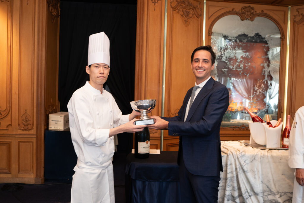 また、10月3日(火)に優勝者による本大会テーマ料理のお披露目食事会が、ホテルニューオータニ東京 「トゥールダルジャン東京」にて開催されました。2位・3位の方のご紹介、フランス・テタンジェ社:ロナン・ド・ラ・モルレ氏より優勝者へカップが贈呈され、温かい雰囲気の中、優勝者を出席者全員で称えました。