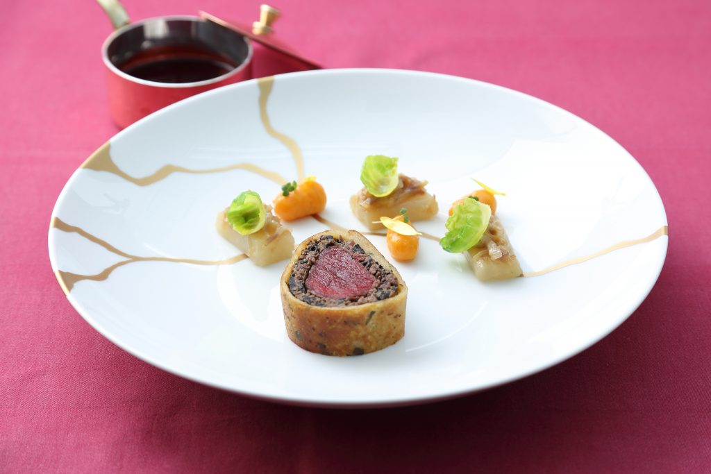 | Biche en croûte de pomme de terre paillasson, gnocki de butternuts et sauce baie de mai | ビッシュ・アン・クルート・ドゥ・ポム・ドゥ・テール・パヤソン、ニョッキ・ドゥ・バターナッツ・エ・ソース・べ・ドゥ・メ |