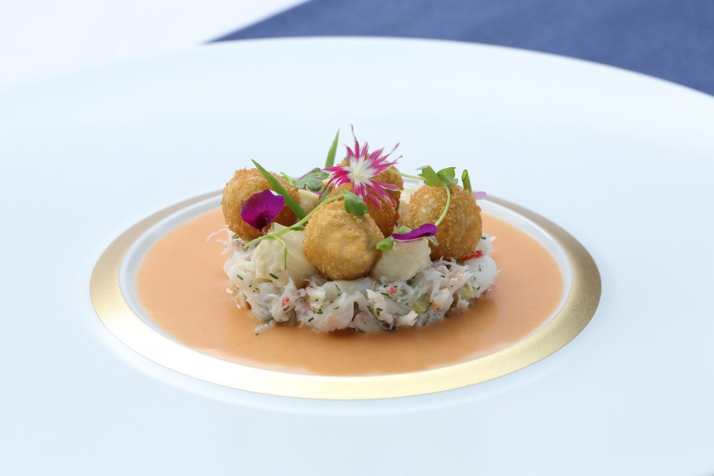 | Zuwai à la Diplomate, diarole d’échalote et moules du Mont-Saint-Michel en cromesquis | ズワイ・ア・ラ・ディプロマト、ディアロル・デシャロット・エ・ムール・デュ・モン‐サン‐ミッシェル・アン・クロメスキ |