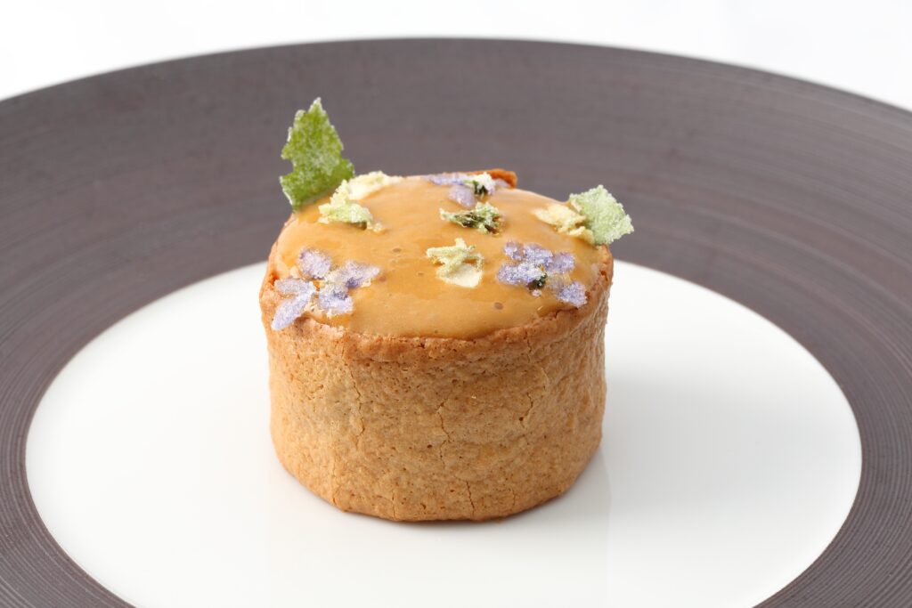 | Tourteau de Casier Emietté et gelée de carapace Crémeux choux fleur et coulis carotte passion (E) | トゥクトー・ドゥ・カジエ エミエテ・エ・ジュレ・ドゥ・カラパス クレムー・シュ・フルール・エ・クーリ・キャロット・パッション |