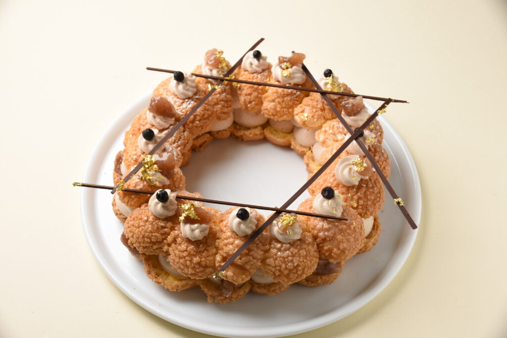 | Paris-Annonay : pâte à choux, crème mousseline marron, confit cassis, croustillant (E) | パリーアノネ―:パータ・シュ―、クレーム・ムスリーヌ・マロン、コンフィ・カシス、クルスティヤン |